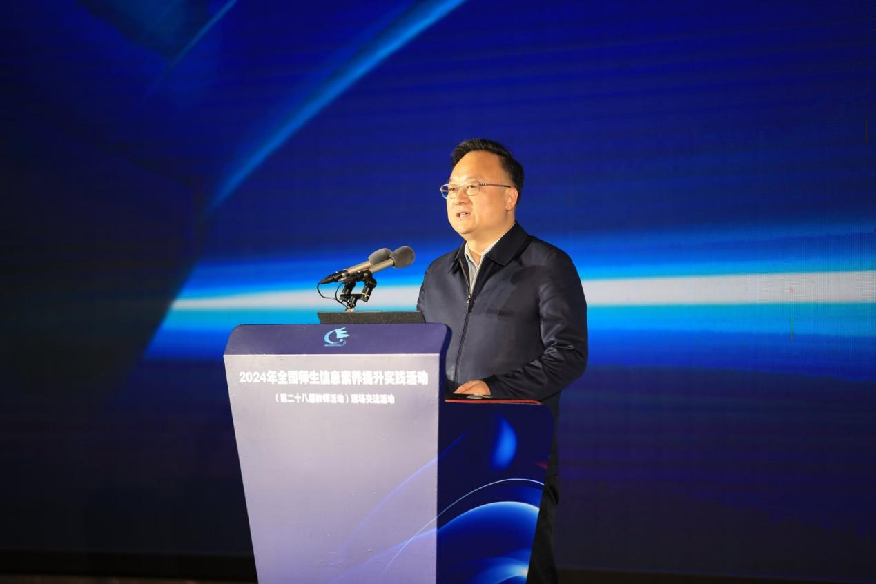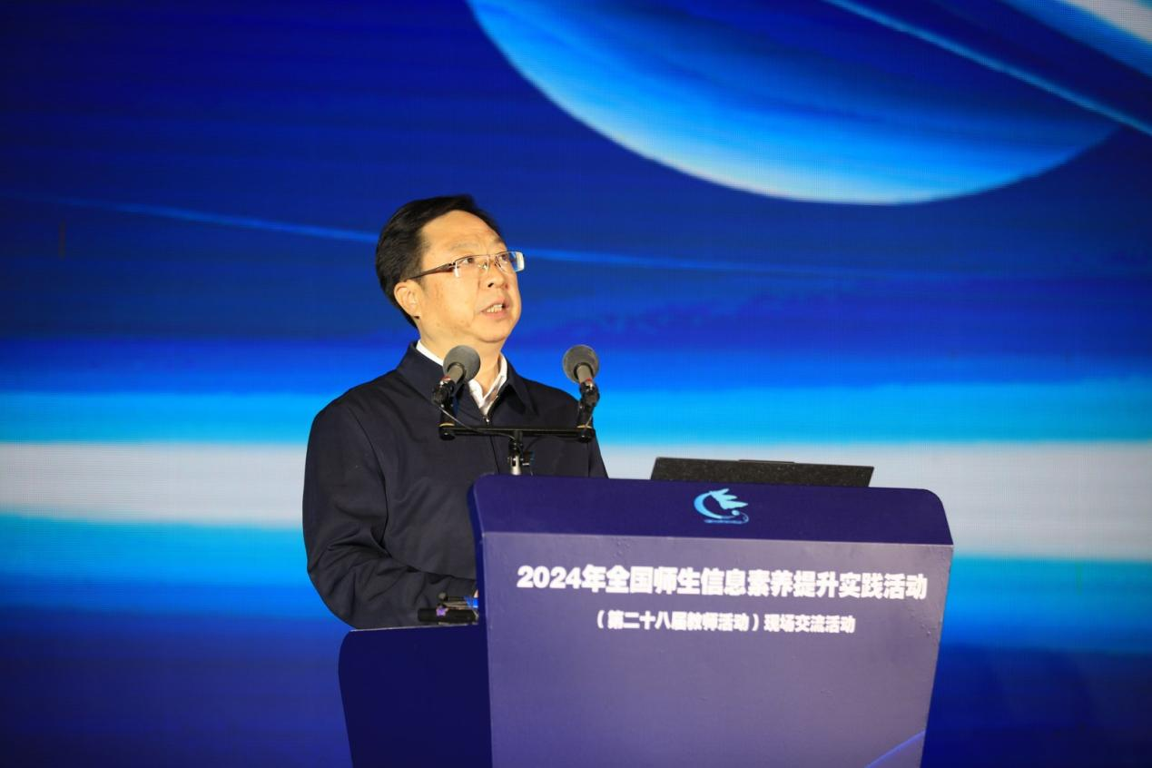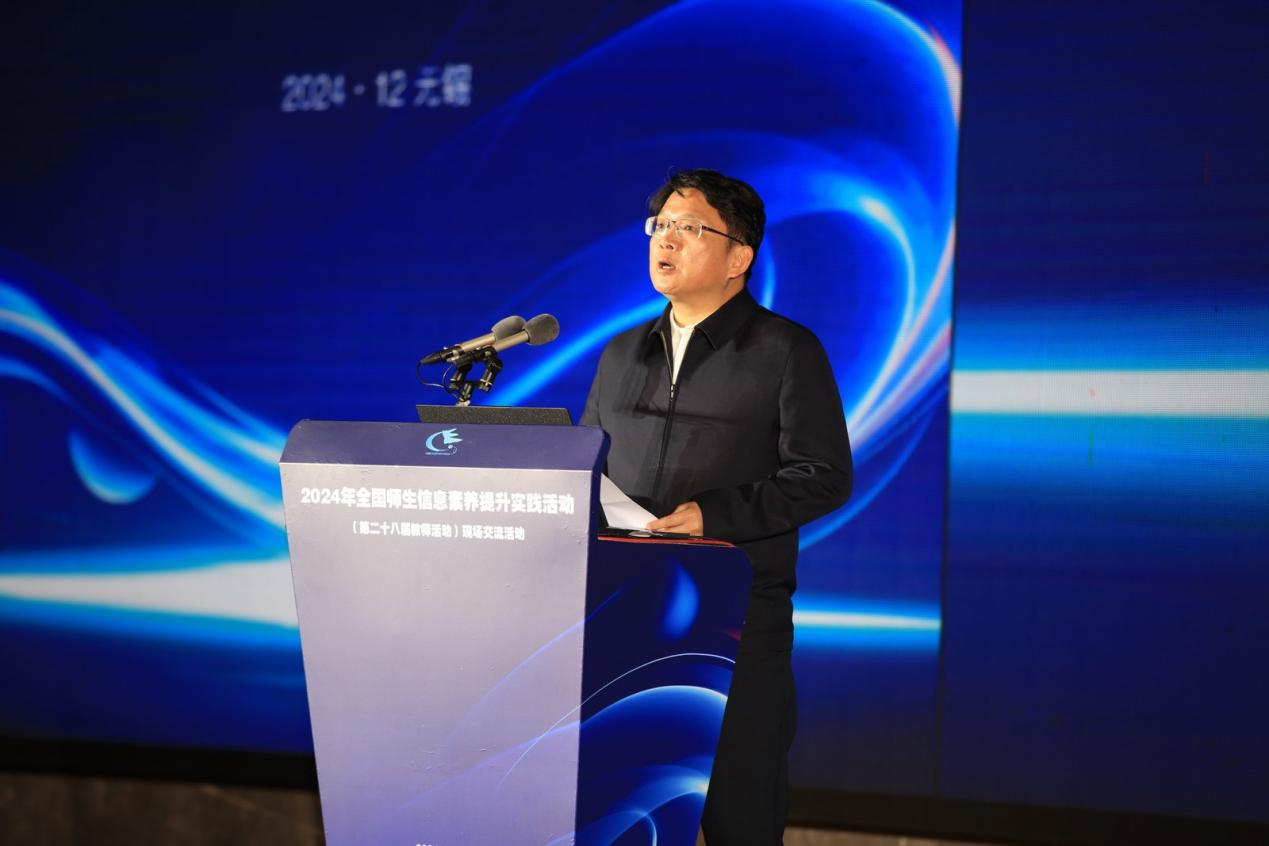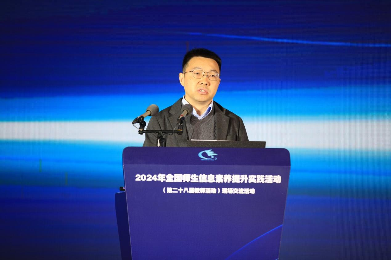 肖航副主任总结了全国师生信息素养提升实践活动的重要性及其成就,介绍了本届活动的四大主要项目,期待通过此次活动,进一步推动教师的信息素养提升和教育数字化转型,为实现教育强国的目标贡献力量。