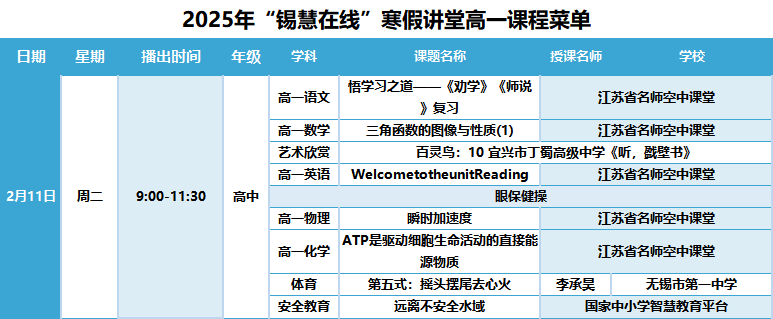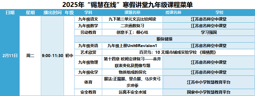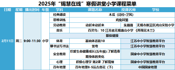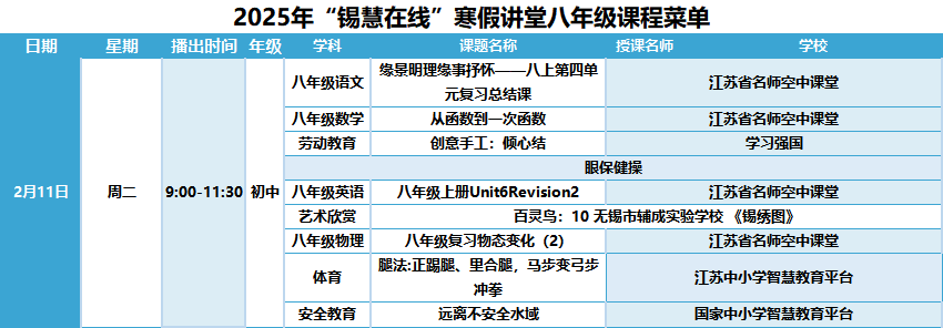 感谢国家中小学智慧教育平台、学习强国和省名师空中课堂提供课程资源,为“锡慧在线”寒假直播课堂的顺利开展提供了有力支持。