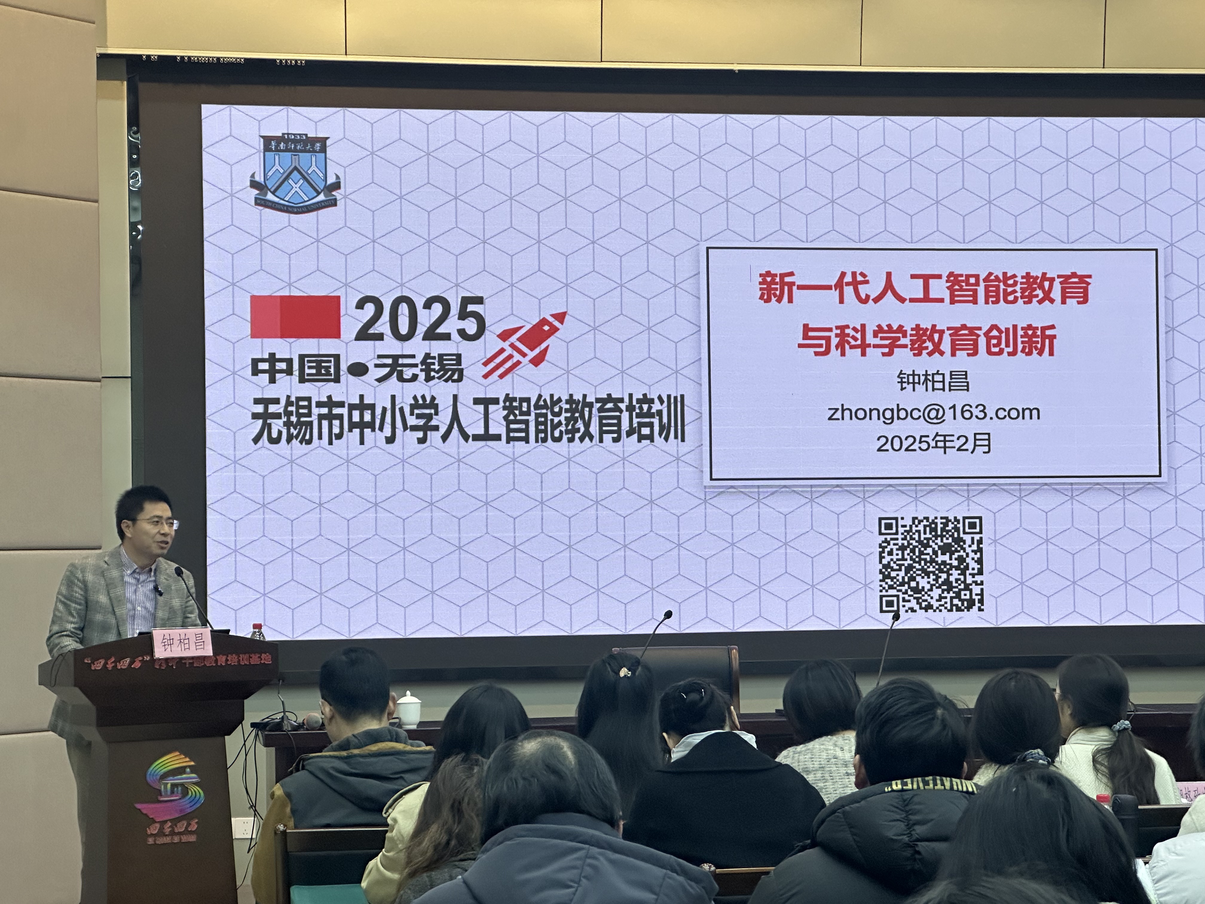 华南师范大学青年拔尖人才、教育信息技术学院教授、博士生导师,融创教育实验室/STEAM教育创新实验室负责人钟柏昌教授,为与会人员带来了一场题为《新一代人工智能教育与科学教育创新》的精彩讲座。钟教授深入浅出地讲解了新一代中小学人工智能教育的发展背景、基本特征,以及课程建设的逻辑主线与分层进阶框架。他还探讨了在新一代人工智能背景下,科学教育的转向和实验教学创新的方向,为教师们打开了通往未来教育的大门,引发了大家对教育创新的深入思考。