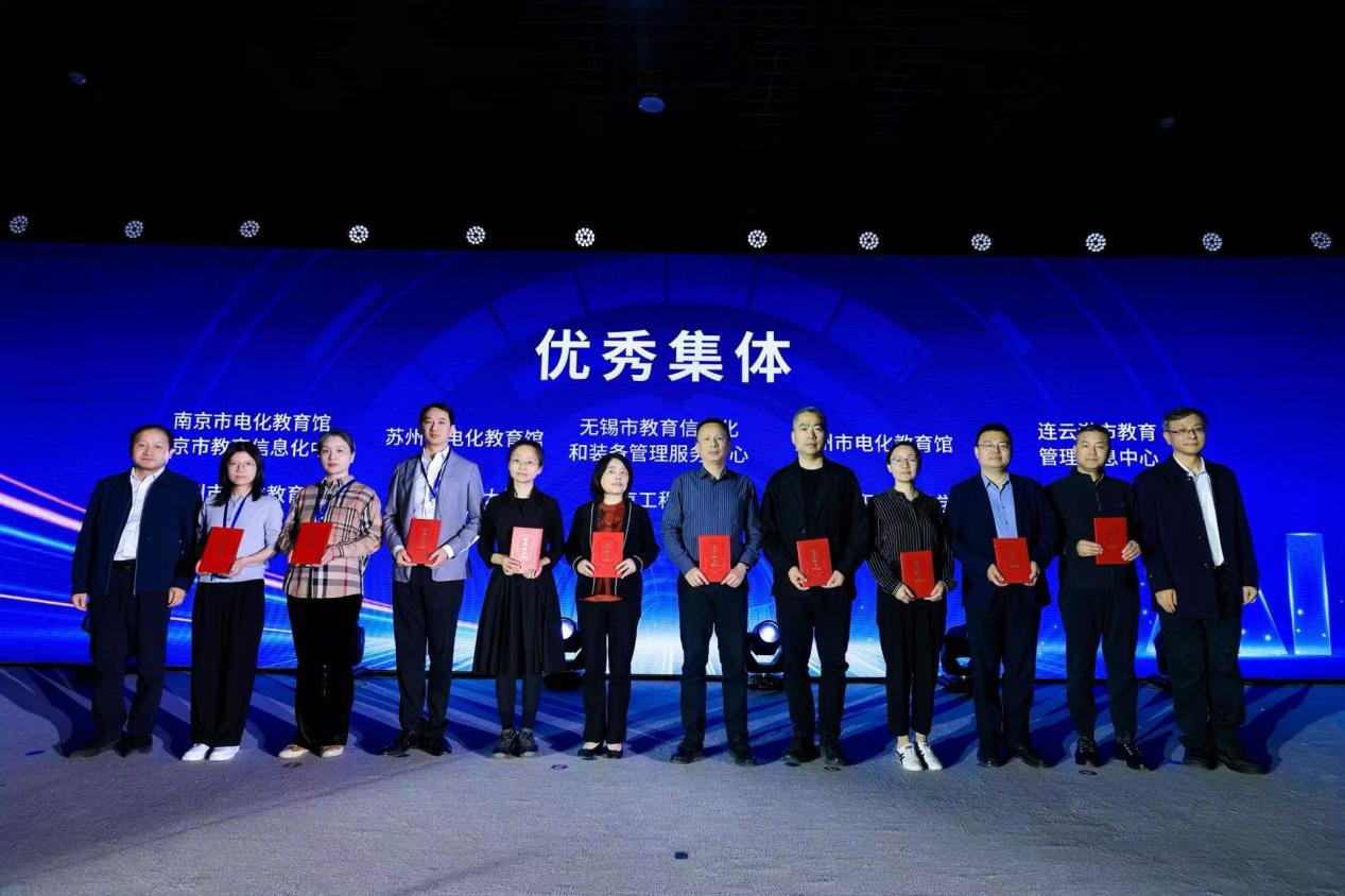 在颁奖环节,与会领导、嘉宾为2024年“领航杯”江苏省教育信息化应用能力大赛的优秀集体和优秀个人代表颁奖。我市代表队在大赛中表现出色,荣获多个奖项,无锡市教育信息化和装备管理服务中心荣获优秀集体奖。