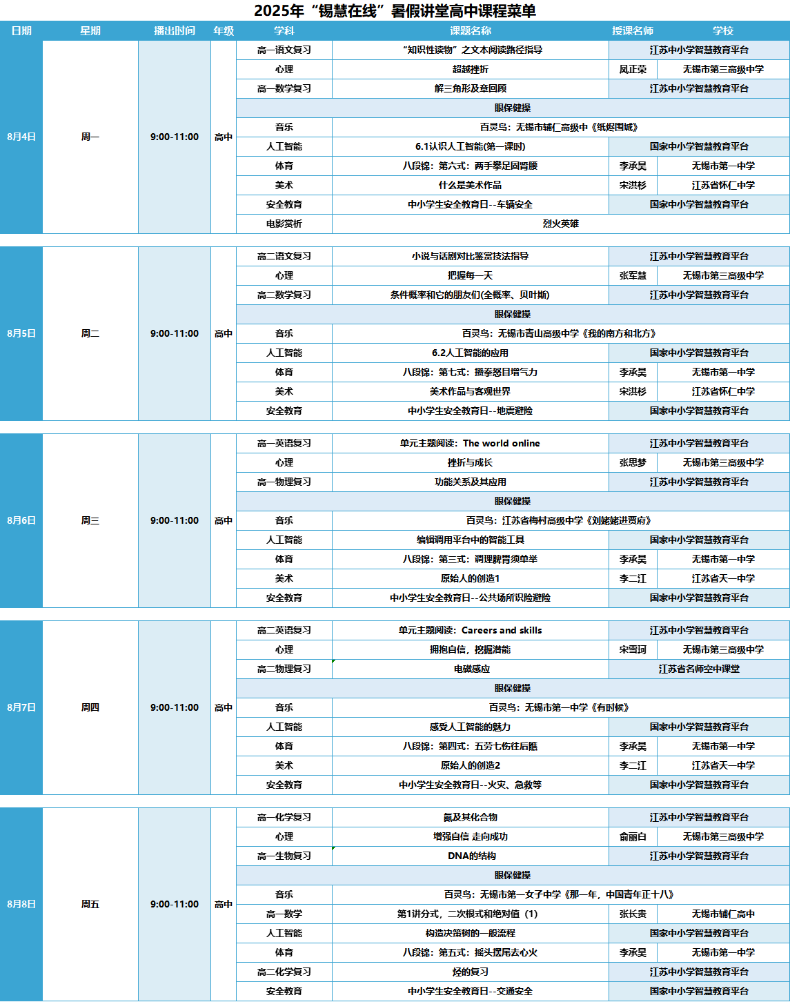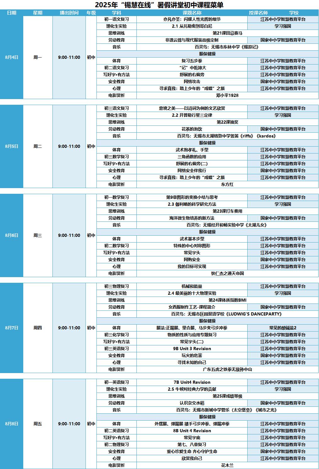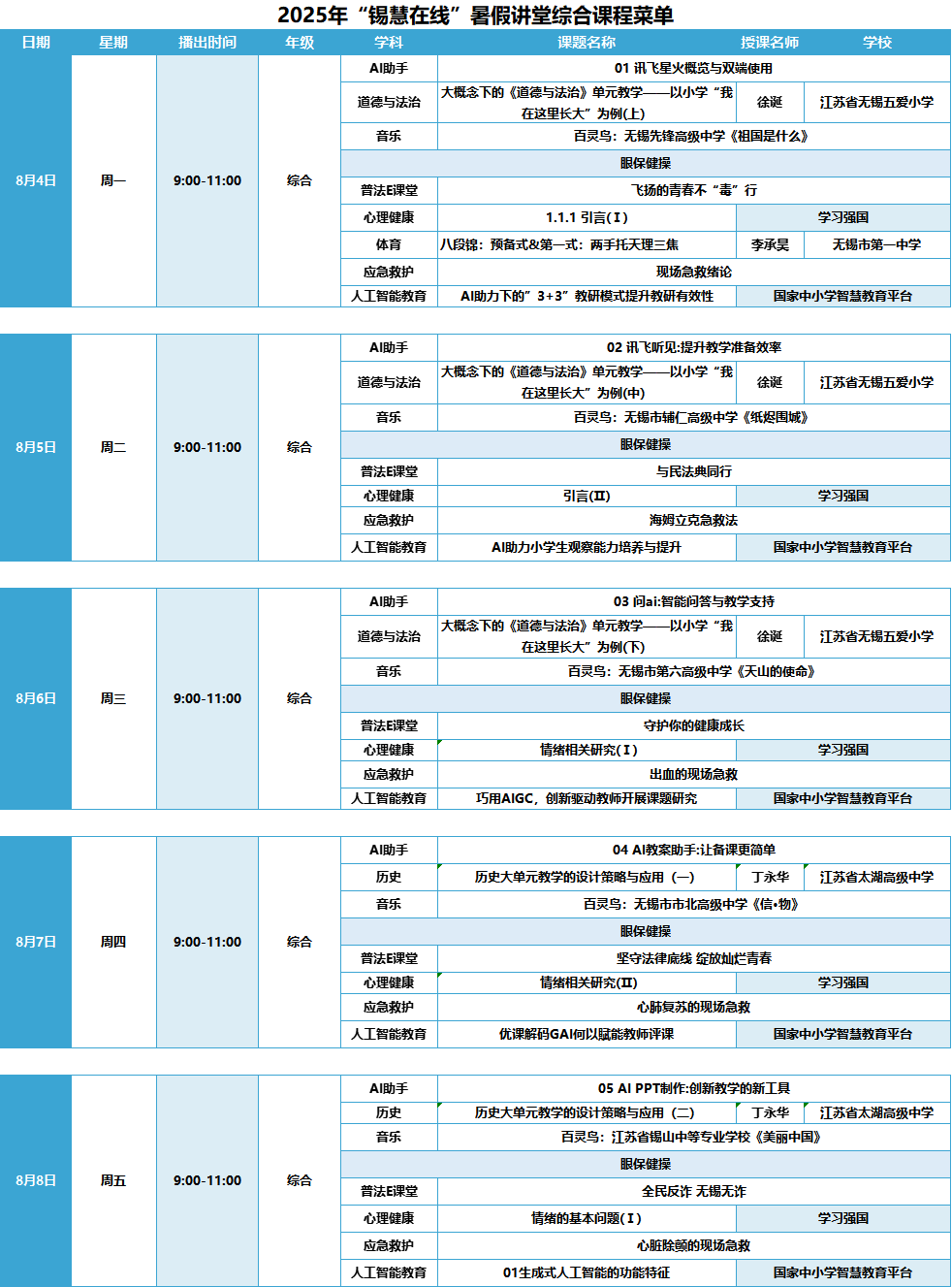 为了让学生、家长、老师度过一个开心又安心的暑假,“锡慧在线”学习平台从7月7日至8月22日(周一到周五)开启暑假直播。