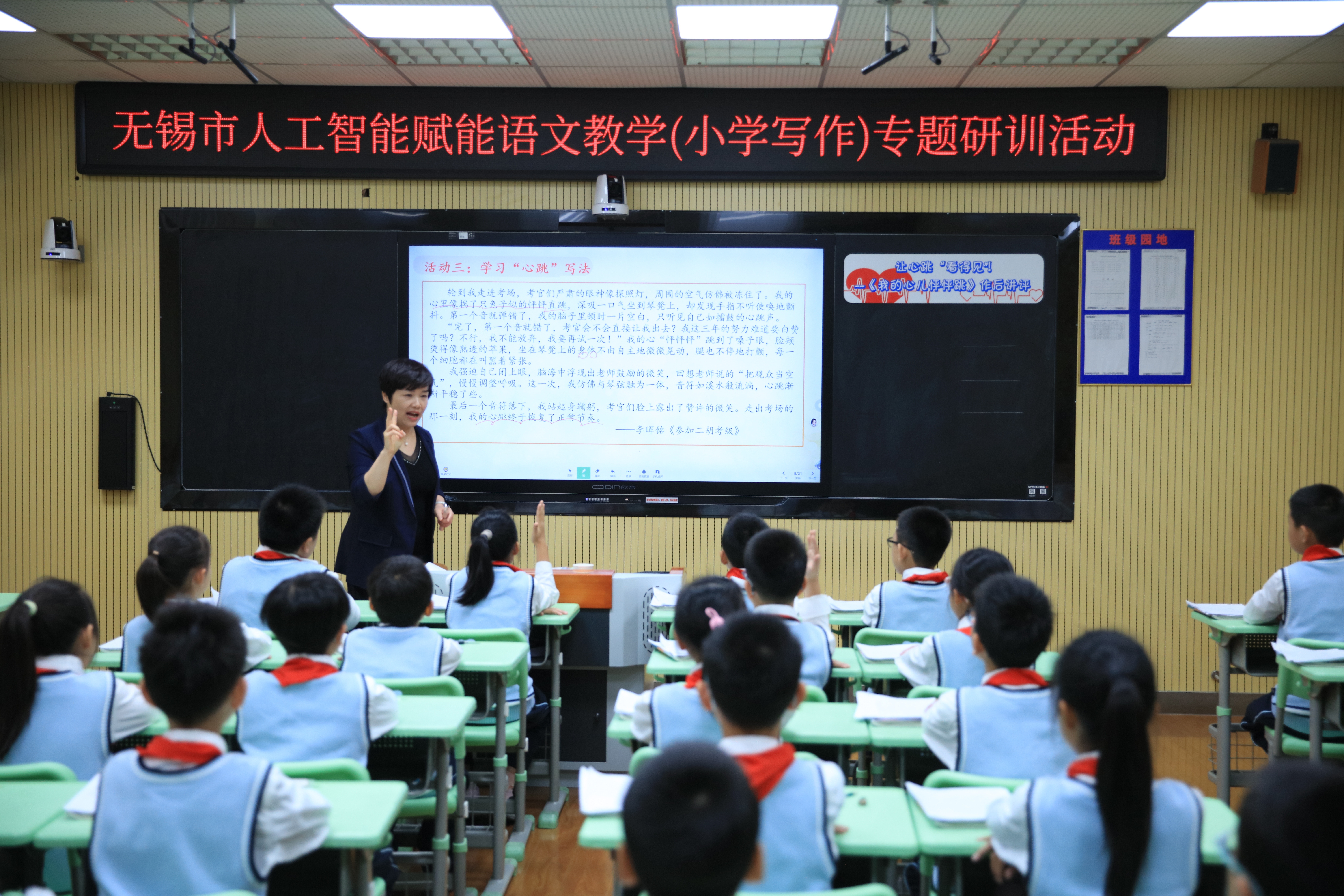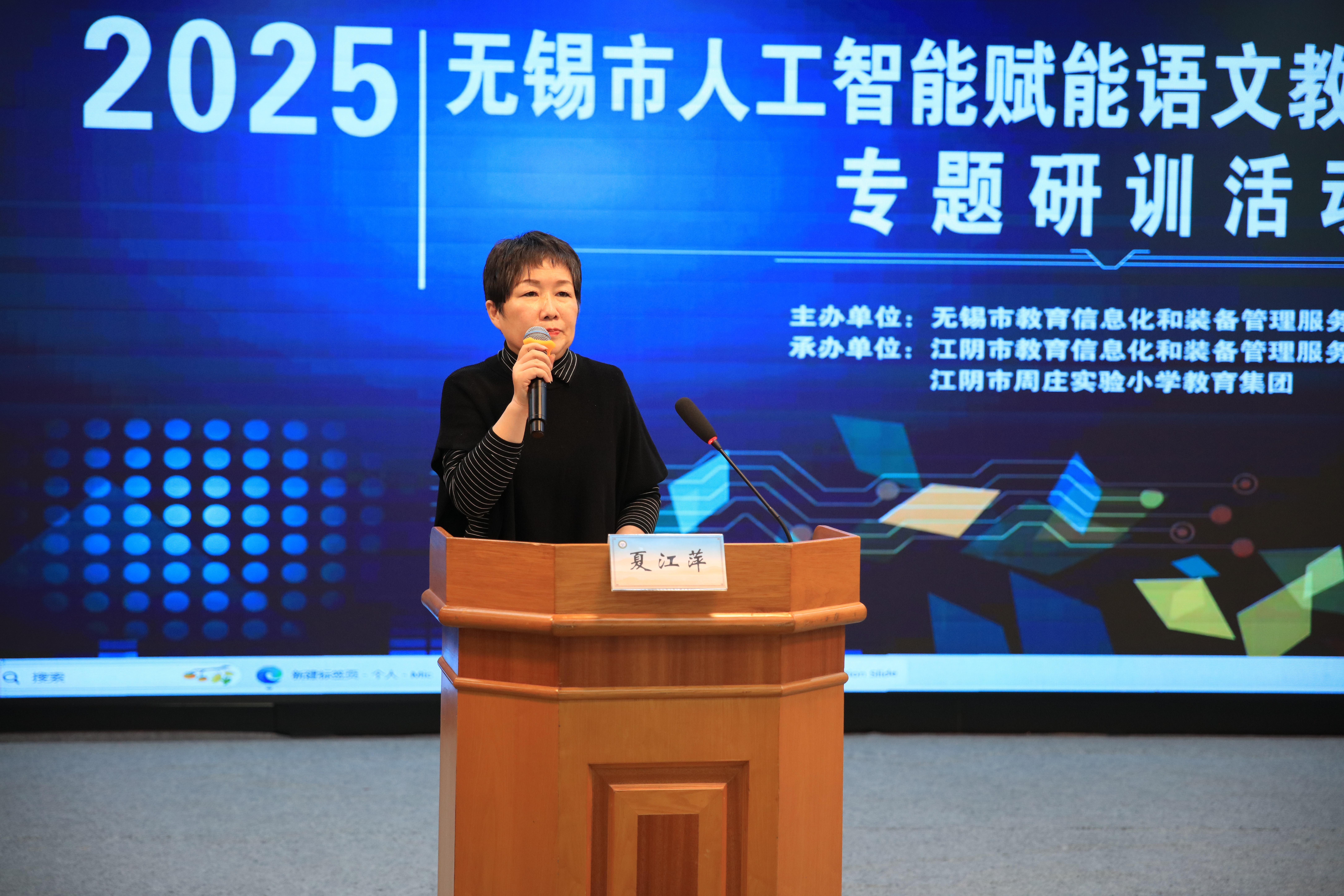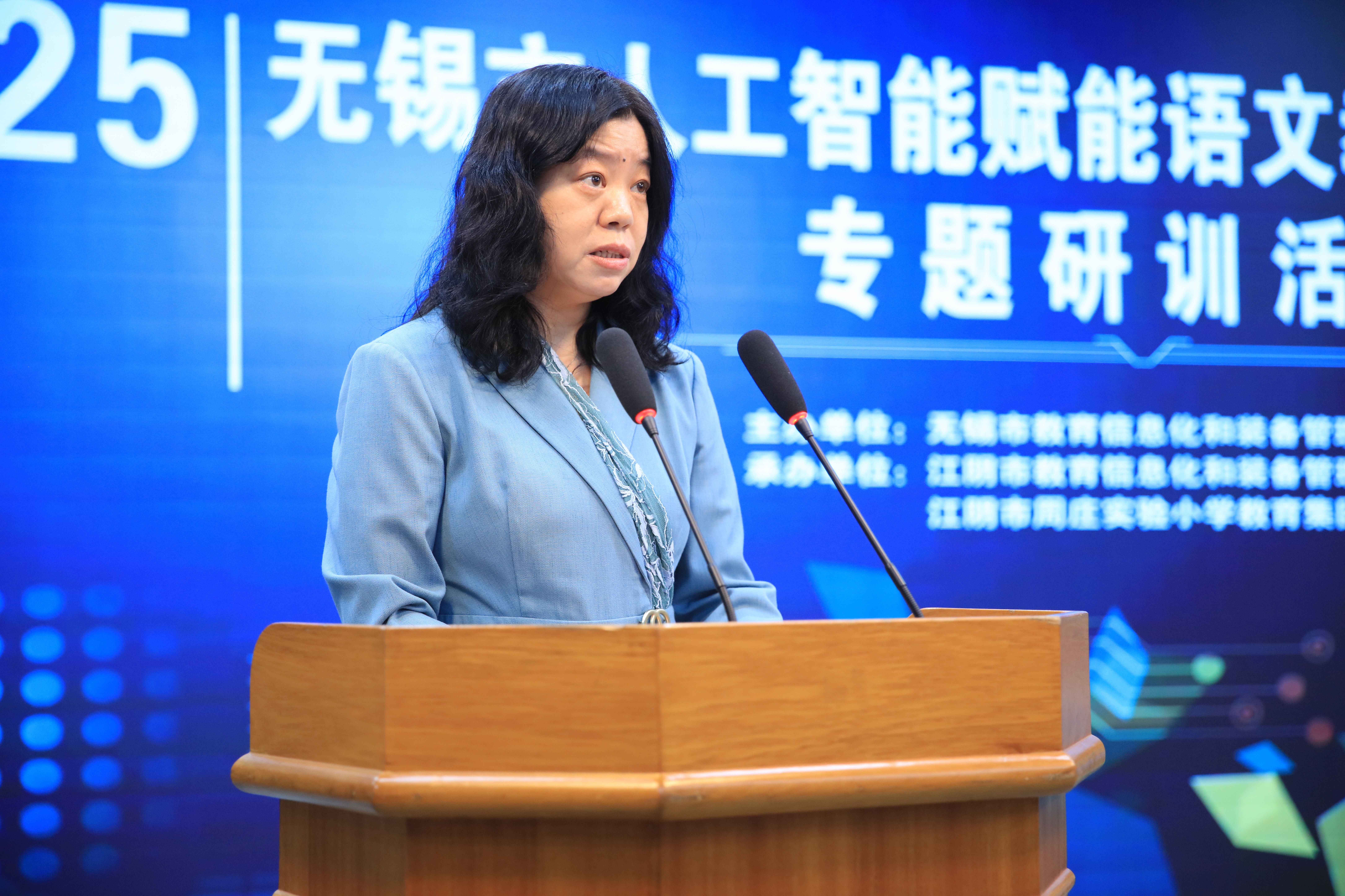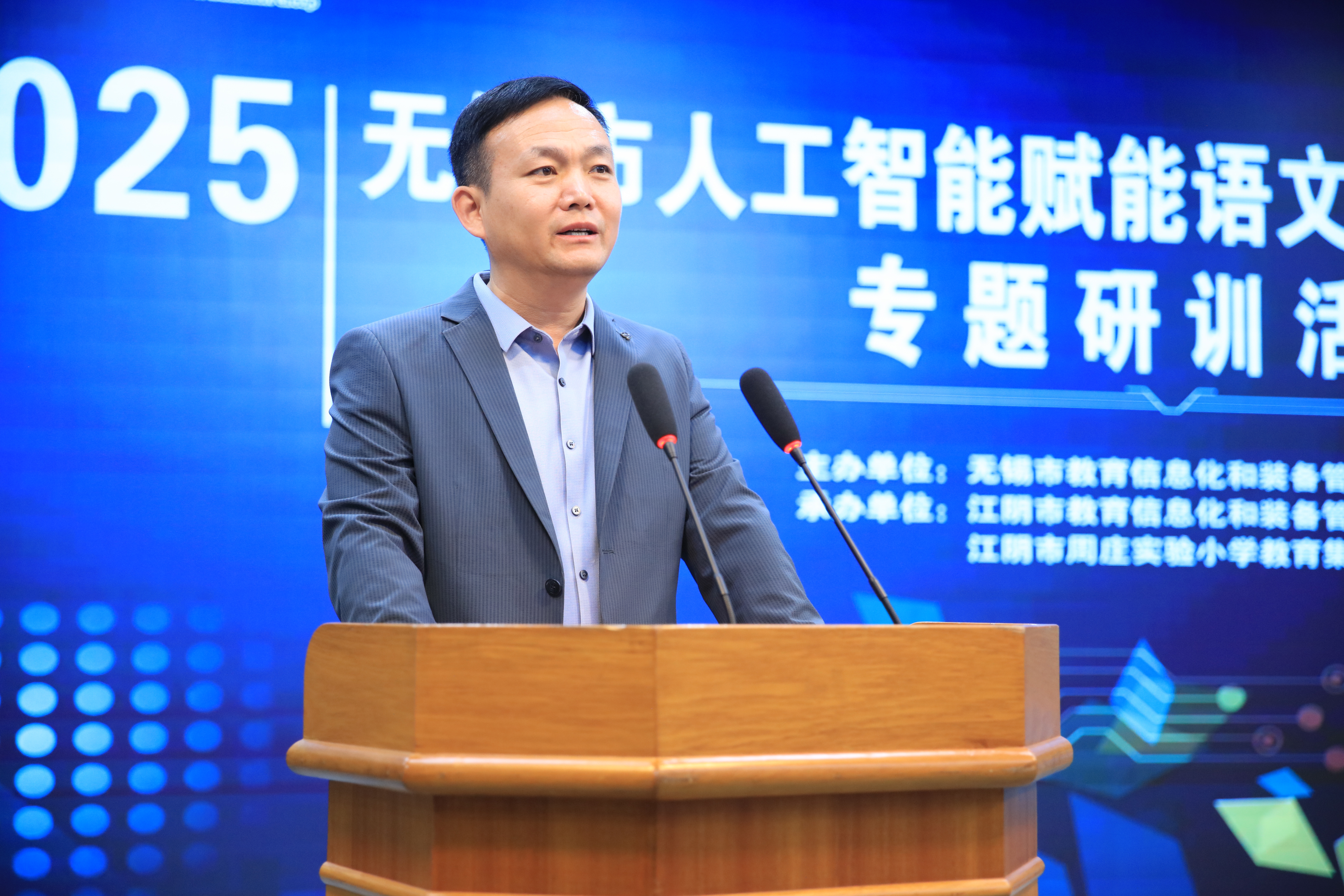 为深入贯彻国家教育数字化战略行动,推动“人工智能+教育”融合创新,10月23日,由无锡市教育信息化和装备管理服务中心主办,江阴市教育信息化和装备管理服务中心、江阴市周庄实验小学教育集团承办的“AI赋能・智写未来”——人工智能赋能语文教学(小学写作)专题研训活动在江阴市周庄实验小学成功举办。无锡市教育局四级调研员张海涛,无锡市教育信息化和装备管理服务中心主任朱卓伟、有关负责人徐伟东以及各区县小学语文、信息技术教师代表和“未来教师AI成长营”学员近四百人参与活动,探索智能技术与写作教学的融合路径。