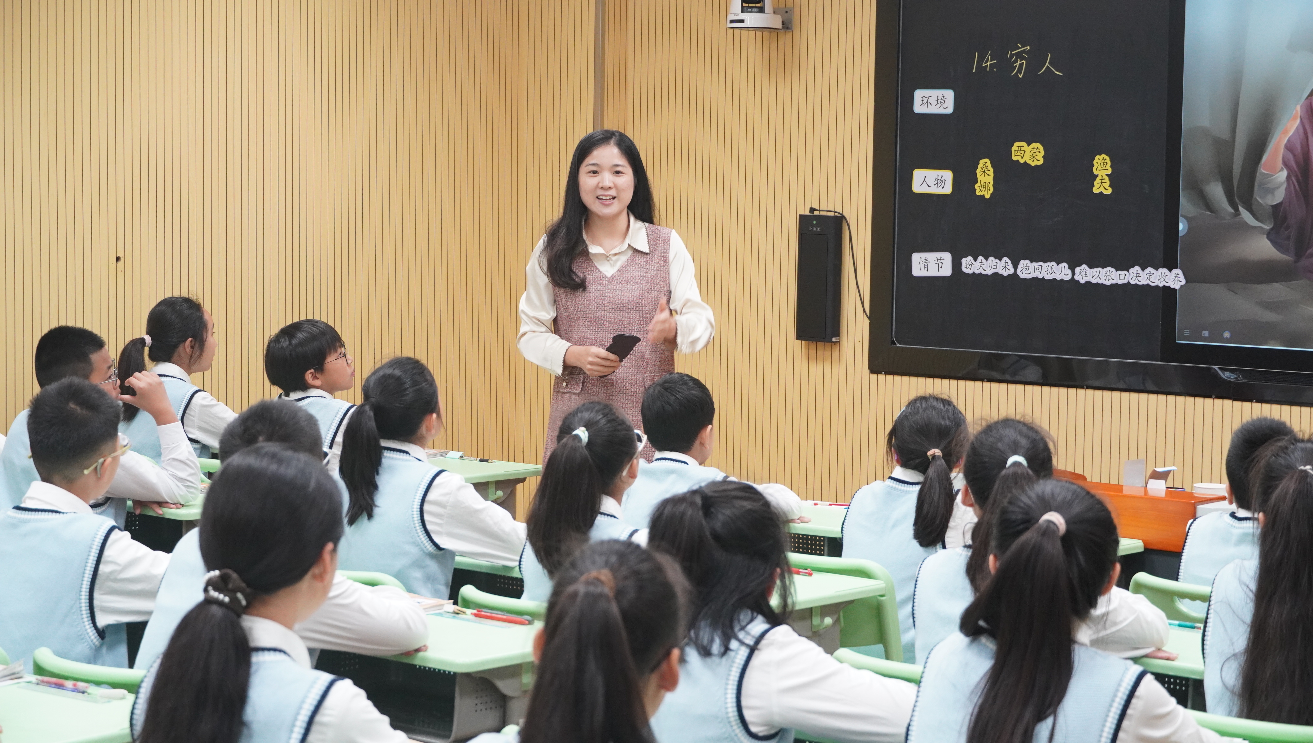 深圳市螺岭外国语实验学校刘妙灵老师展示《穷人》读写整合课,借助AI解析文本,提炼“环境烘托+细节刻画”写作模板,成功帮助学生实现从阅读理解到写作实践的能力迁移。