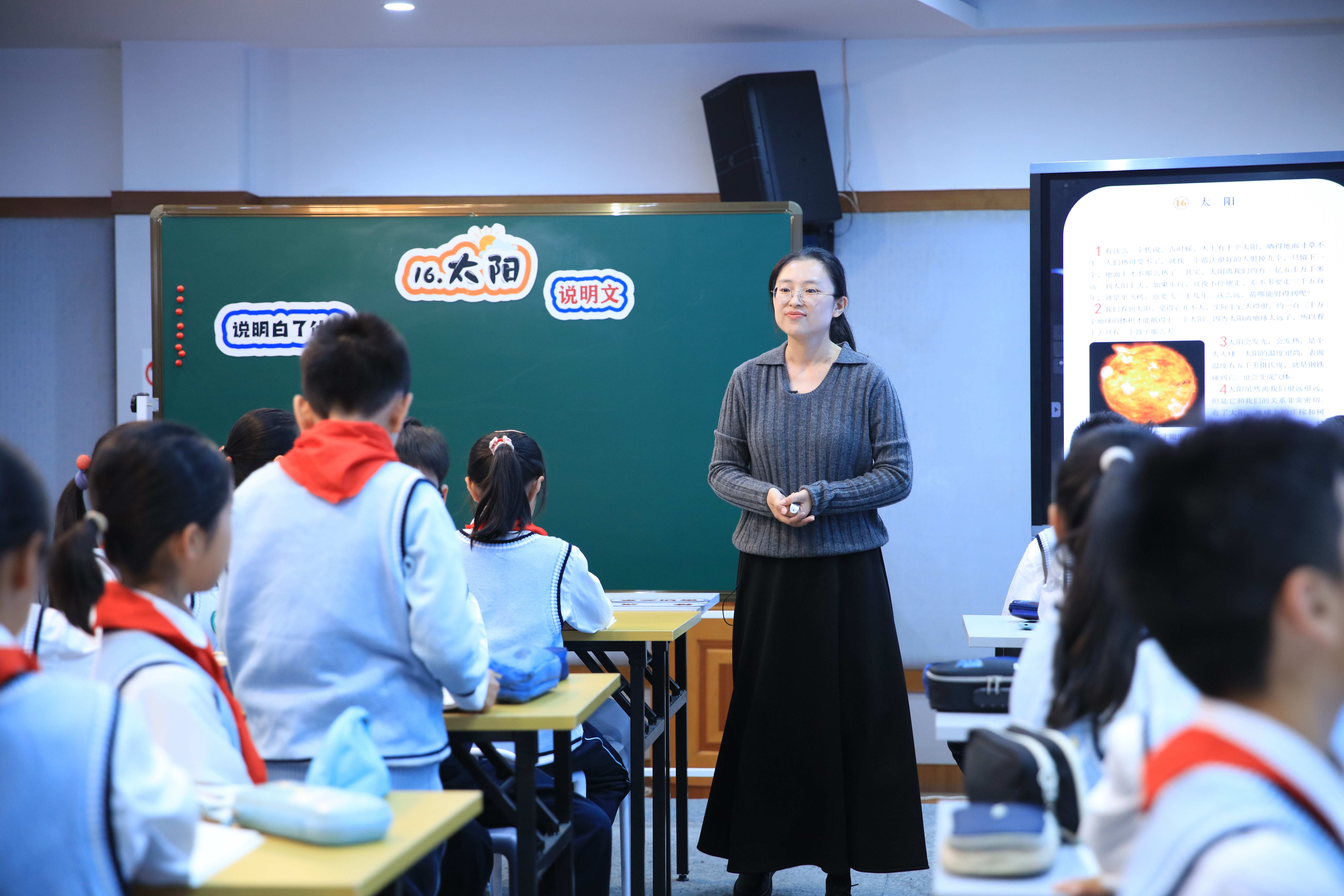 宜兴市张渚小学陆婷婷老师在《太阳》中,以“科技馆讲解员”任务驱动学生运用AI掌握说明方法。