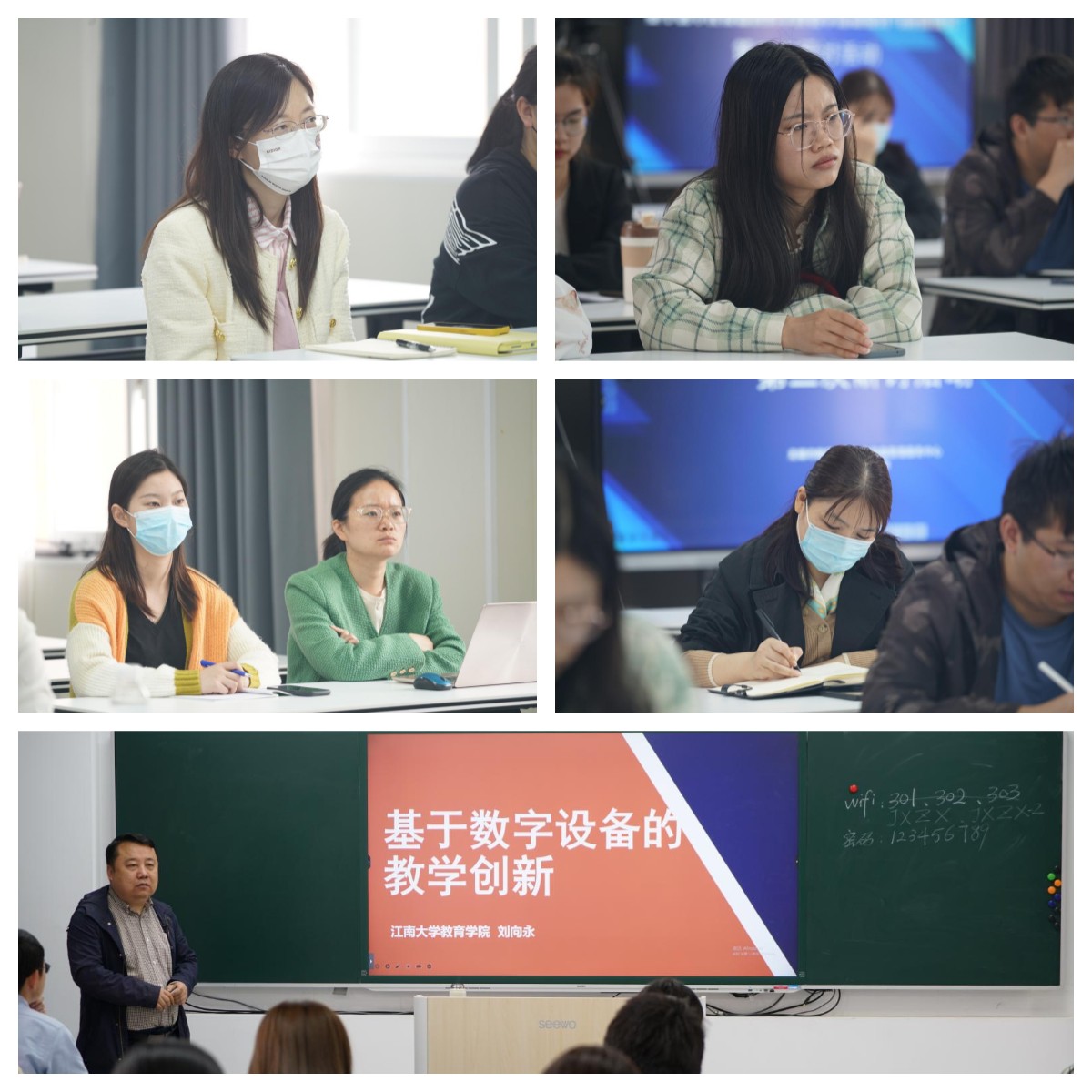 活动中,江南大学人文学院刘向永副教授作了题为《基于数字设备的教学创新》的讲座。市教信装备中心资源建设部对多媒体交互设备使用、移动终端教学课例设计进行了现场指导。
