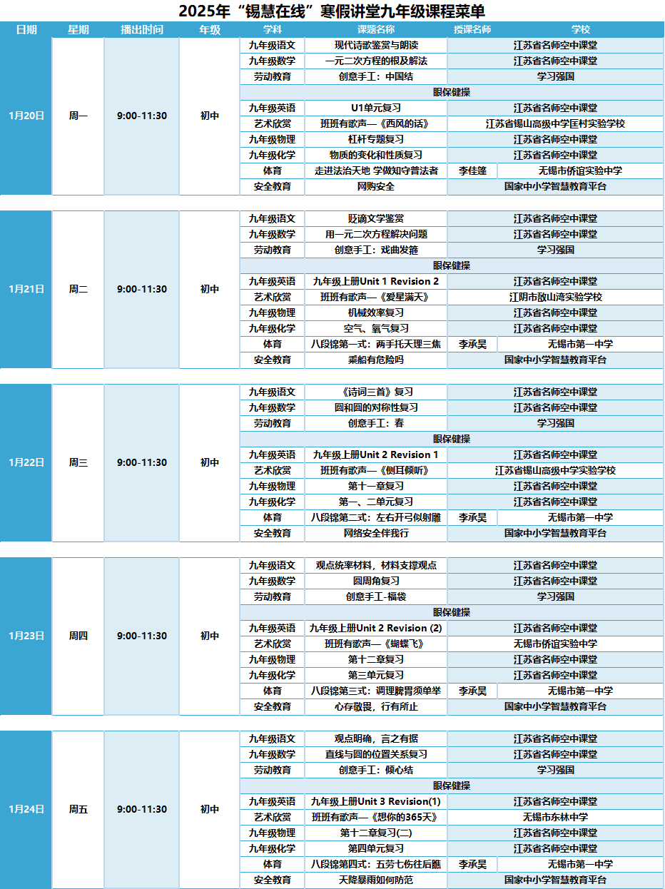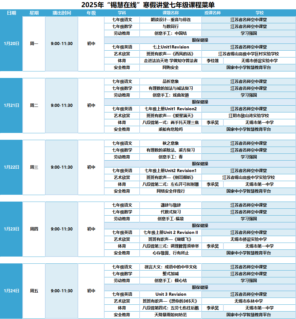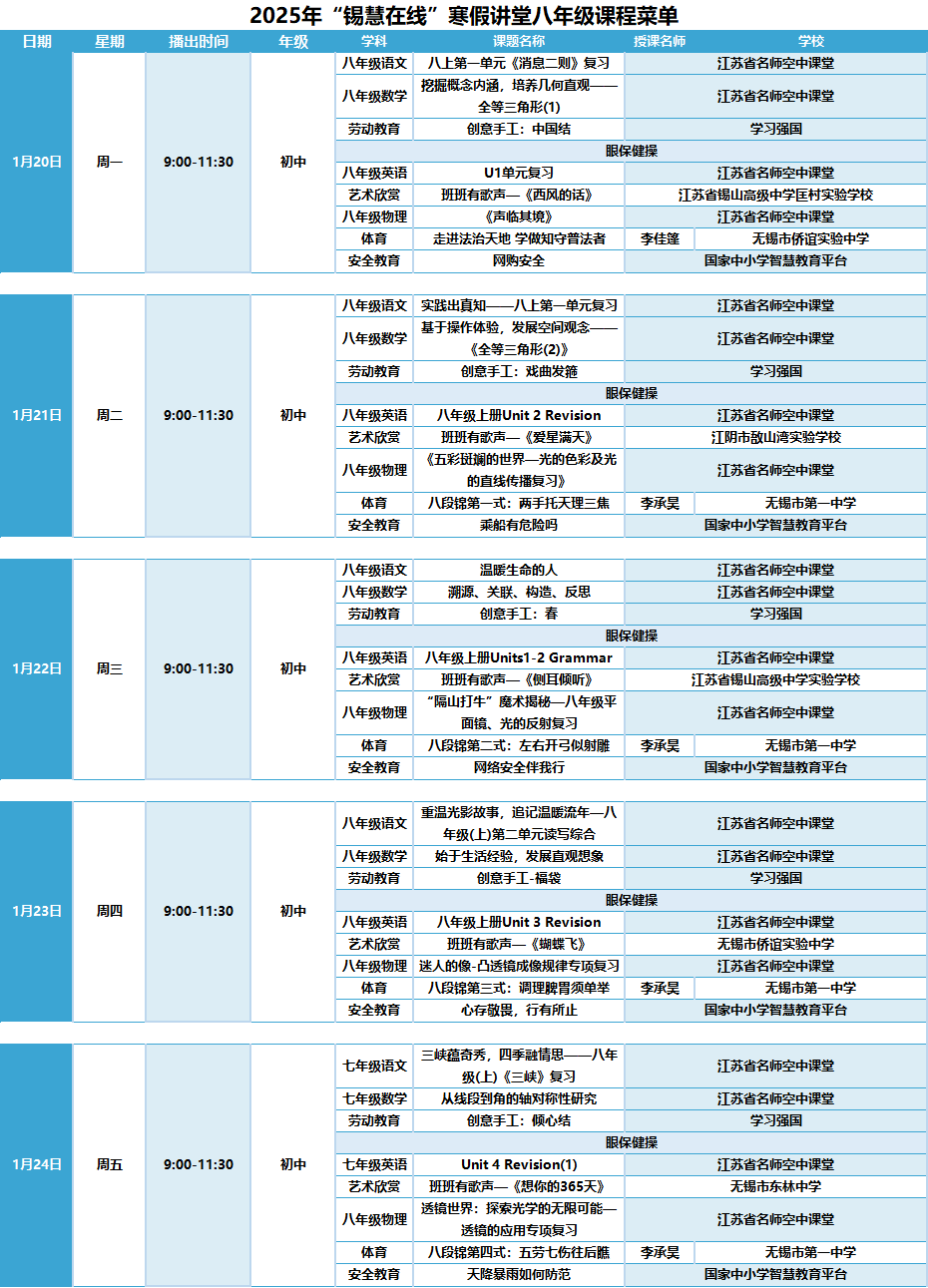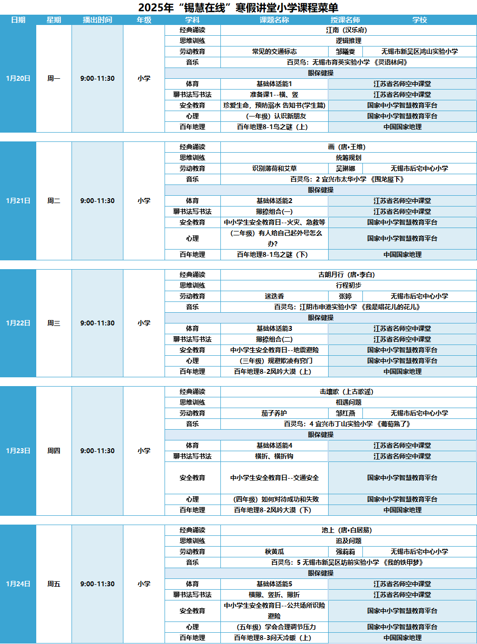 感谢国家中小学智慧教育平台、学习强国和省名师空中课堂提供课程资源,为“锡慧在线”寒假直播课堂的顺利开展提供了有力支持。