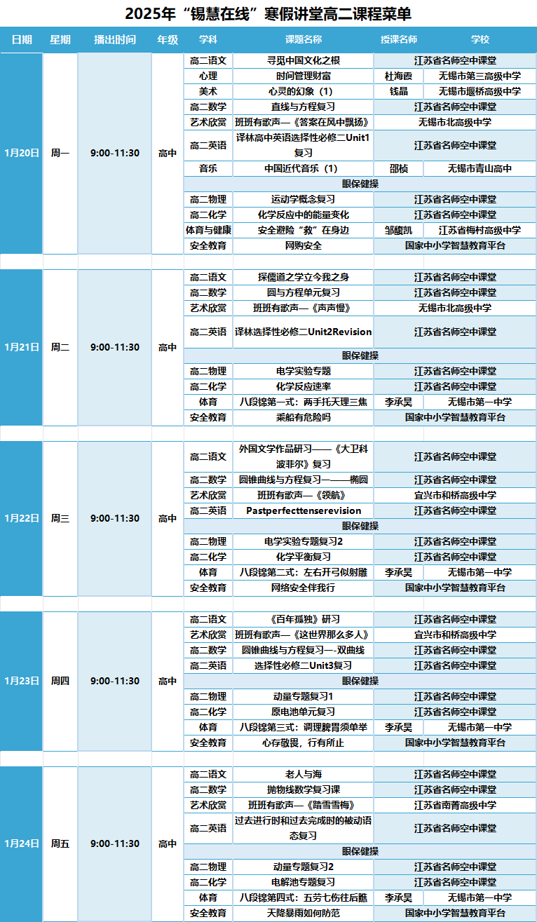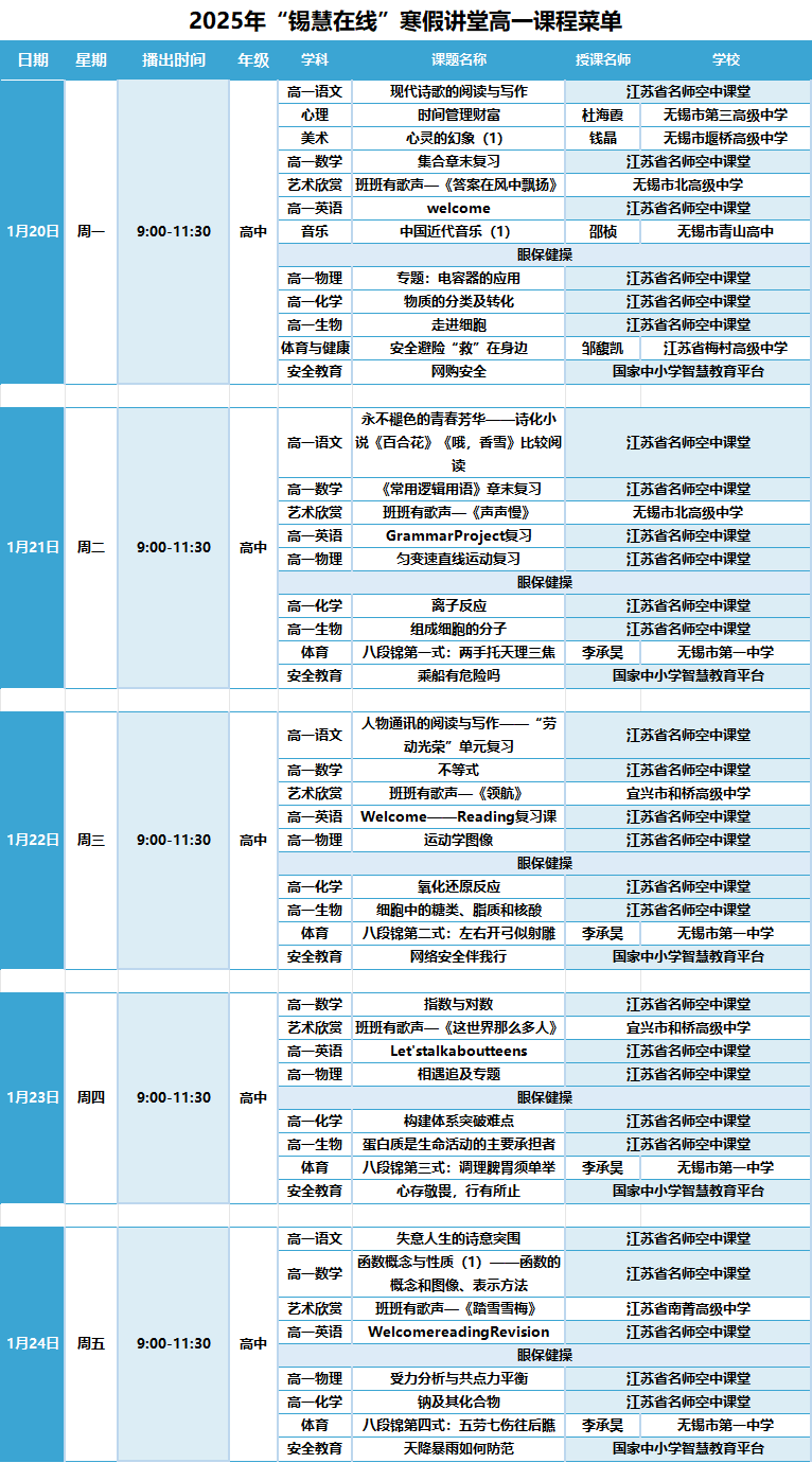 寒假到了,这是放松和提升的好时候。“锡慧在线”寒假直播课堂来啦,为各年级同学准备了丰富课程,助力大家在假期中也能收获满满。