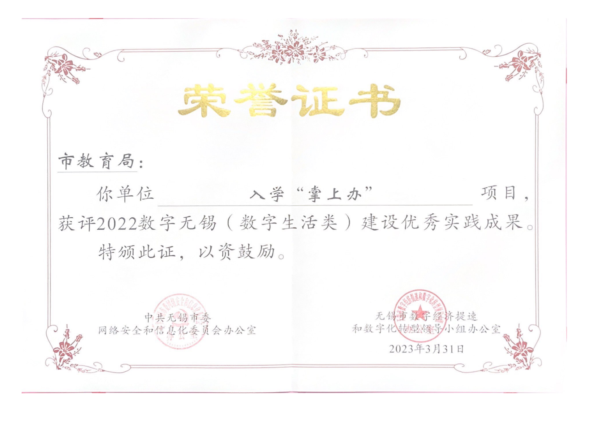 活动现场,无锡市教育局办公室副主任毛燕上台领取了“2022数字无锡建设优秀实践成果”奖。