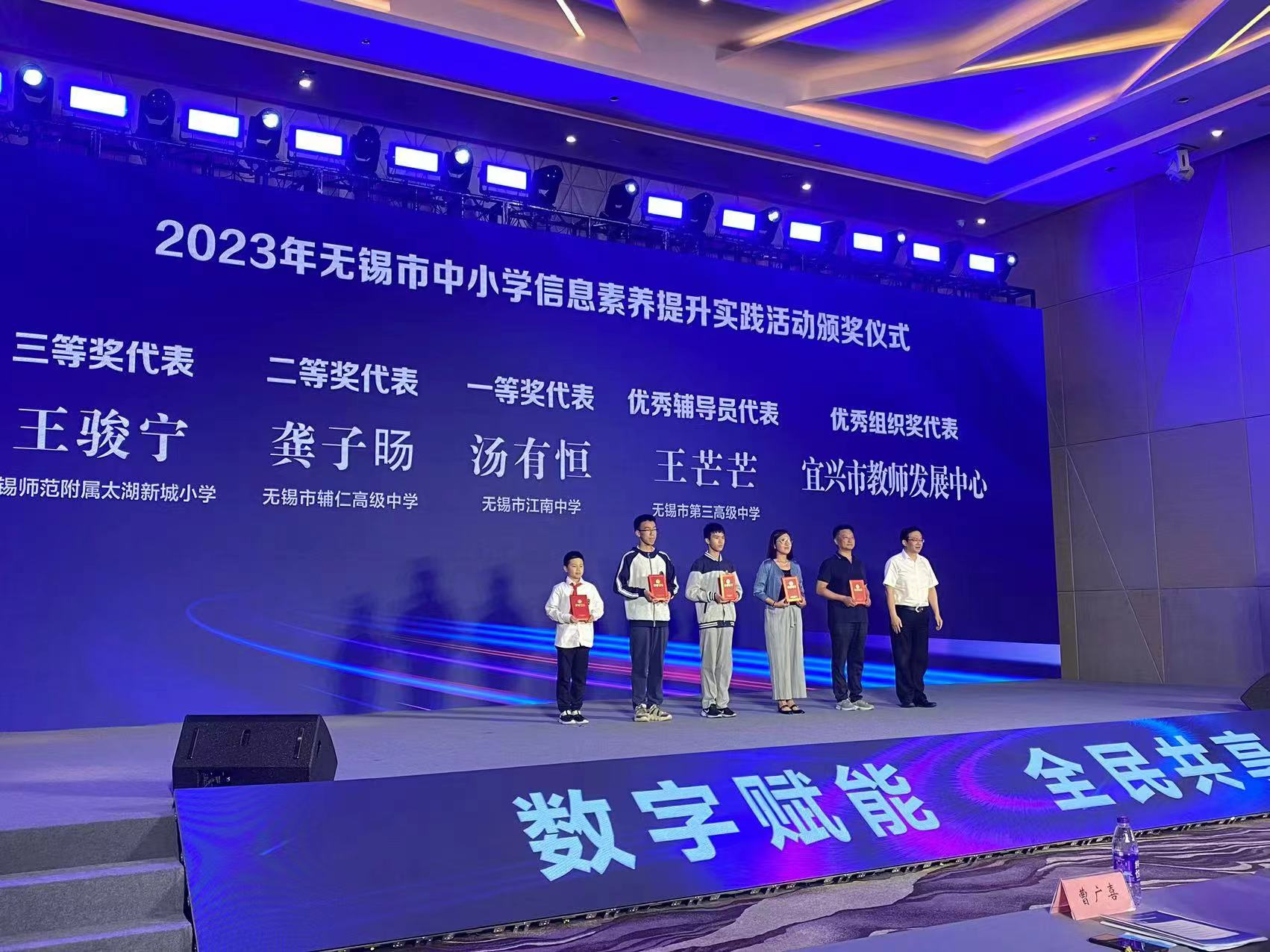 启动仪式上,市教育局副局长许敏颁发了“2023年无锡市中小学信息素养提升实践活动“获奖代表证书,其中王芒芒等5位获奖代表上台领奖。