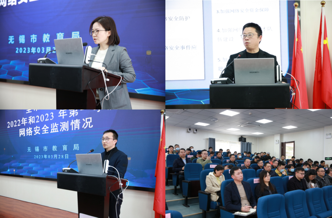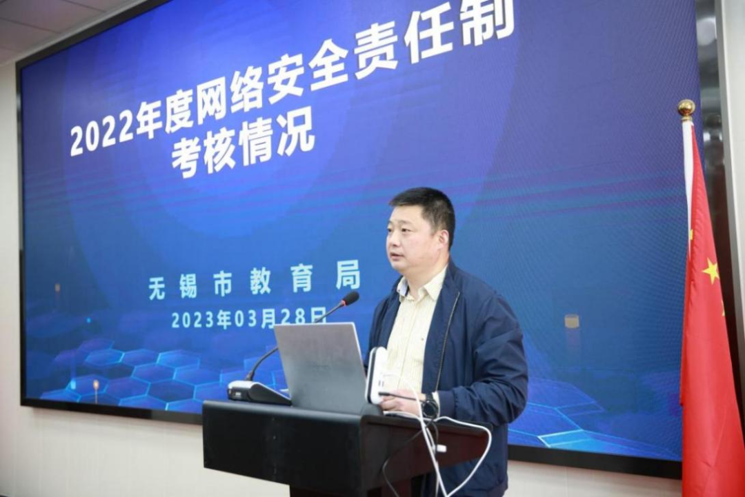 为进一步夯实全市教育系统网络安全工作责任制,提升全市教育系统网络安全防护能力。3月28日下午,市教育局在市教育信息化和装备管理服务中心召开了“2023 年无锡市教育系统网络安全工作会议”,各市(县)区教育局、各直属单位、市属民办学校网络安全工作分管领导和部门负责人参加本次工作会议。