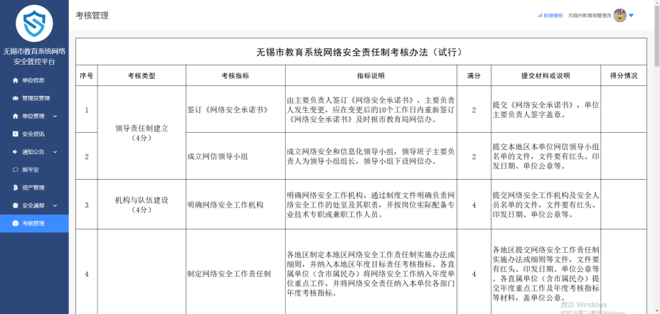 统筹完善教育网络安全制度体系,优化教育系统网络安全责任制考核办法。会上,围绕领导责任制建立、经费保障、信息资产管理、安全威胁监测预警通报、应急管理、网络安全检查、宣传教育培训等考核类型进行了解读,将网络安全工作责任制落实情况持续纳入高质量发展考核、巡查、督查内容。
