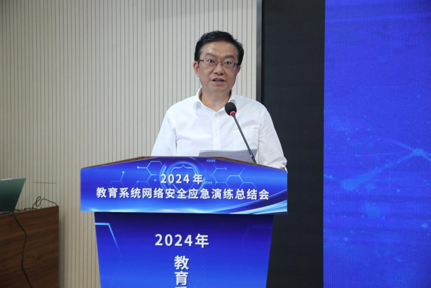 无锡市教育局副局长许敏发表了讲话,他对本次应急演练的成功举办表示肯定,并强调了网络安全在教育系统中的重要性。还对未来教育系统网络安全工作提出了具体要求和期望,强调了持续提升网络安全防护水平的必要性。
