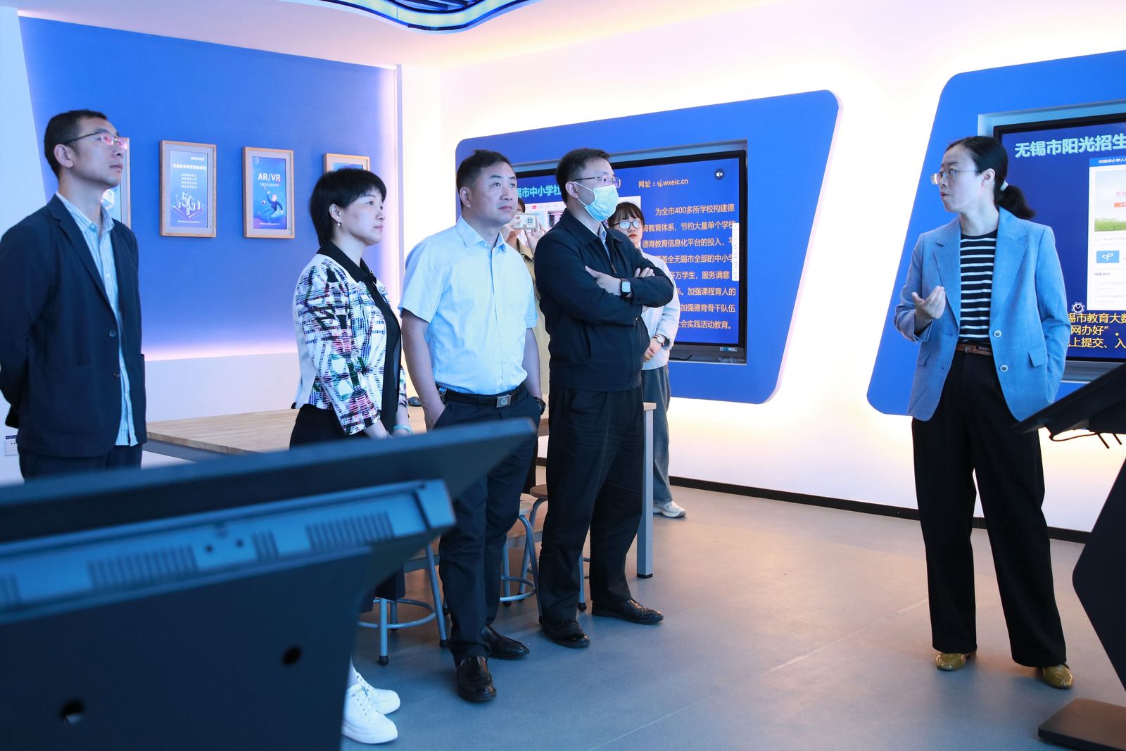 研究组专家们首先参观了无锡市教育信息化和装备管理服务中心,实地调研了中心大数据展示中心、融媒体演播中心等信息化管理服务基地,具体了解无锡市阳光资助系统的建设情况。